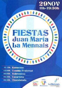 Même si tous les pays de la Congrégation ne soulignent pas la Fête du Fondateur et la Semaine mennaisienne en même temps (calendrier scolaire différent), soyons unis les uns aux autres en ce jour du 26 novembre, pour prier le Seigneur par l’intercession de Jean-Marie de la Mennais !
