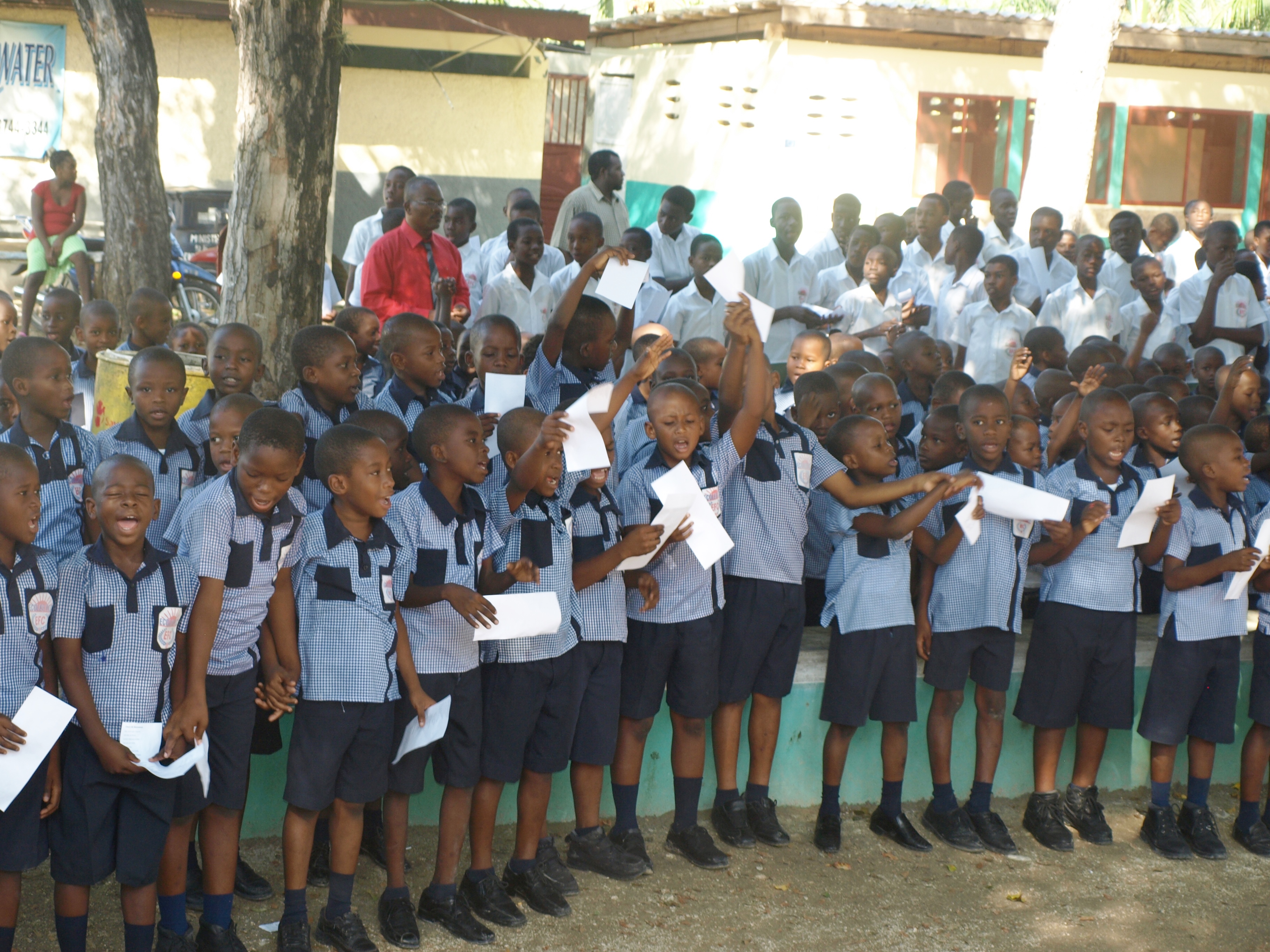 At Jacmel, the Brothers were welcomed by the whole School with rhythmical songs. Bro Edwin, the Head teacher, the three other Brothers of the community and the teaching Staff marked with liveliness the passage of this international delegation. At La Vallée, the Staffs of the Primary and the Secondary schools exhibited the children’s realisations and the young people’s skills.