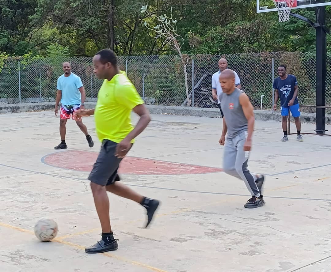 A última hora de la tarde, un descanso recreativo permitió a todos despejar la mente y estirar el cuerpo con un partido de fútbol.