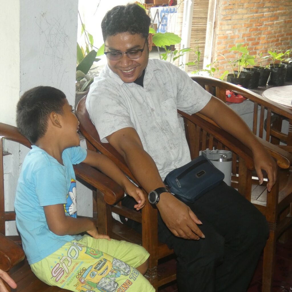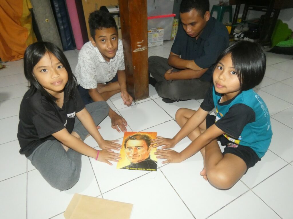 La semaine Mennaisienne a été pour nous l’occasion de réaliser cet objectif. Nous avons donc préparé une petite animation avec des jeux, des chants, des petits concours dans le cadre d’une visite de quelques heures à un orphelinat que les jeunes Frères indonésiens connaissent bien puisque chaque année un ou deux postulants ont eu l’occasion d’aller en « Live-in » de 2-3 semaines dans cet orphelinat « Panti Anak-anak Hamba » a une vingtaine de minutes en moto de notre communauté.