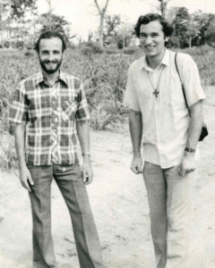 Après le Frère Pierre David, 1er pionnier à Diourbel, la 2ème année (à gauche) rejoignent 3 Frères : Alain Dugas, Jean-Paul Peuzé, Joël Petit et un laïc missionnaire Jean-Yves Thomas ; et la 3ème année (à droite) arrivent les Frères Hervé Asse et Alain Sevestre.