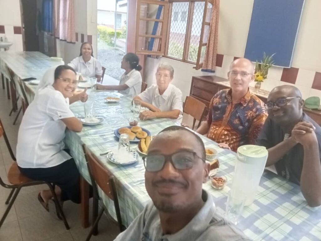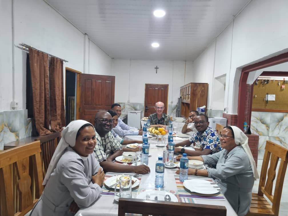Repas au presbytère de Manatuto en compagnie des prêtres et des sœurs cannossiennes.