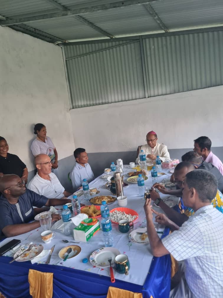 Repas à Cribas en compagnie de Mgr Leandro , évêque de Baucau